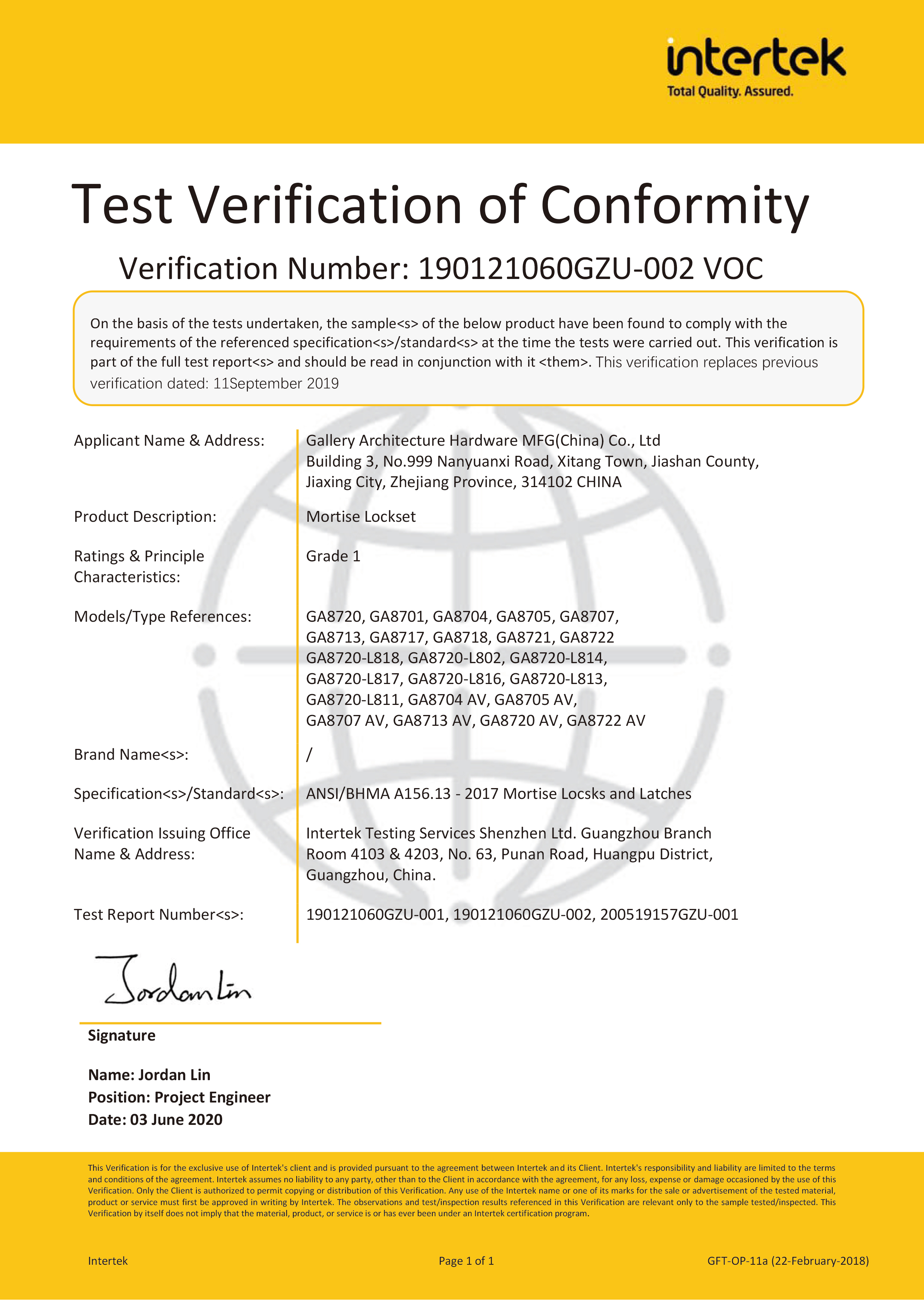 浙江堅迪五金制造有限公司始建于 1995 年。自 2003 開始,公司致力于高標(biāo)準(zhǔn)商業(yè)鎖的研發(fā)工作,并于 2006 及 2007 年,8700 插芯鎖系列獲得美國國家標(biāo)準(zhǔn) ANSI A 156.13-2005 一級、ANSI A 156.2-2003 二級和美國 UL 10C3 小時防火測試認(rèn)證。自 1998 年以來,公司不斷提升產(chǎn)品和客戶服務(wù)品質(zhì),并獲得了 ISO 9001 的認(rèn)證。